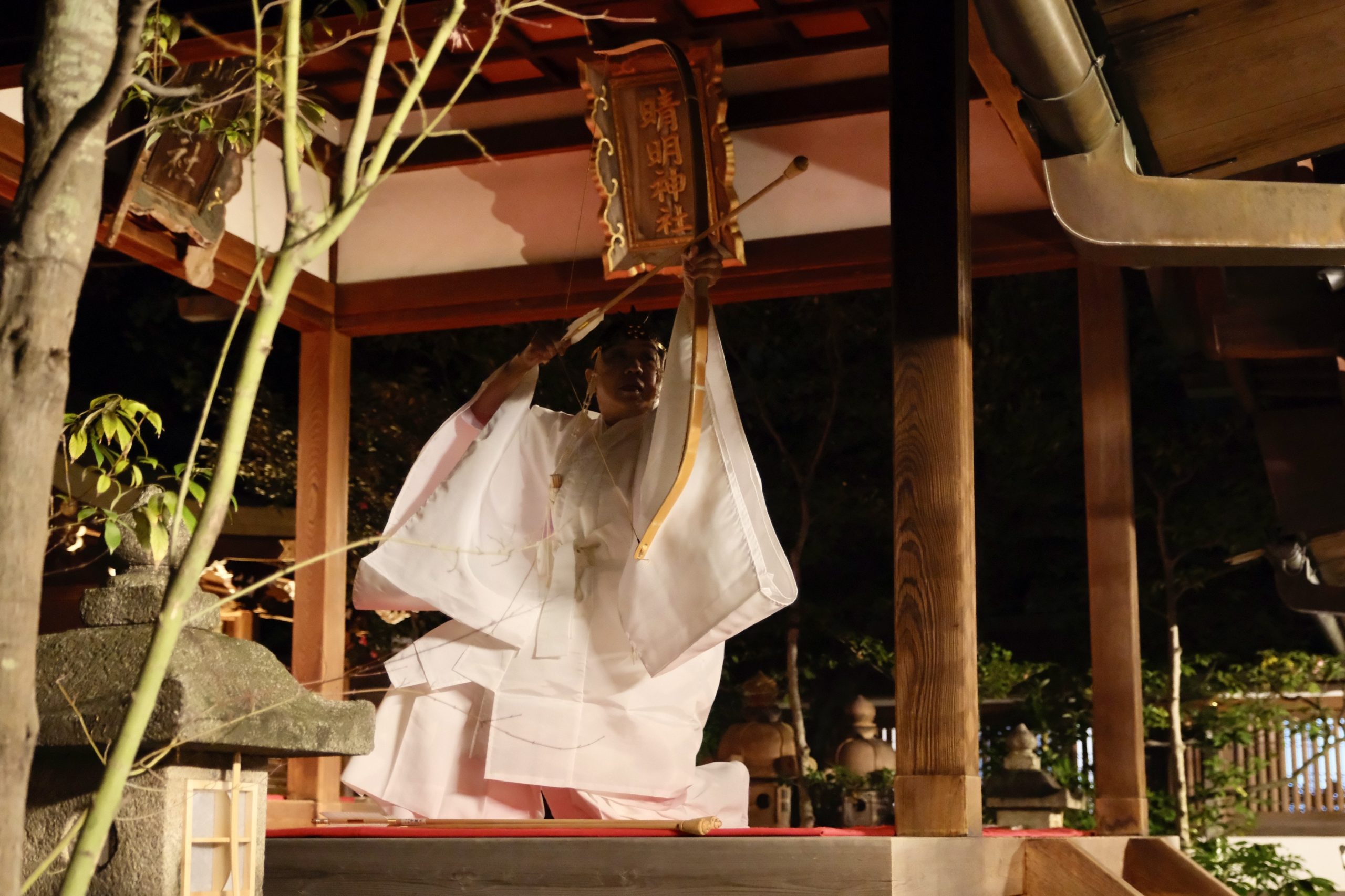 「いんよー」の掛け声とともに神職が鏑矢(かぶらや)を四方に矢を放ち、追儺の儀を執り行うことができました。